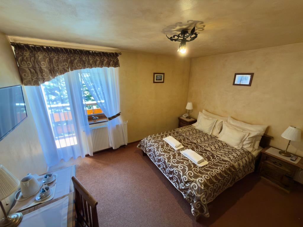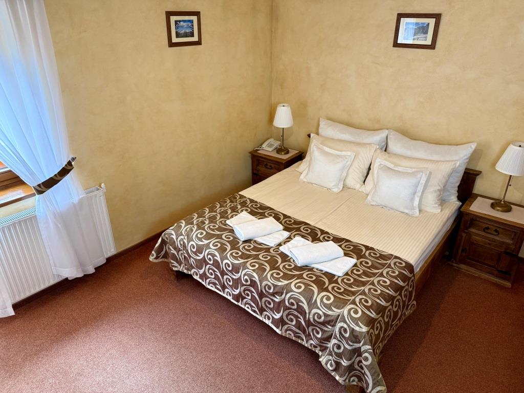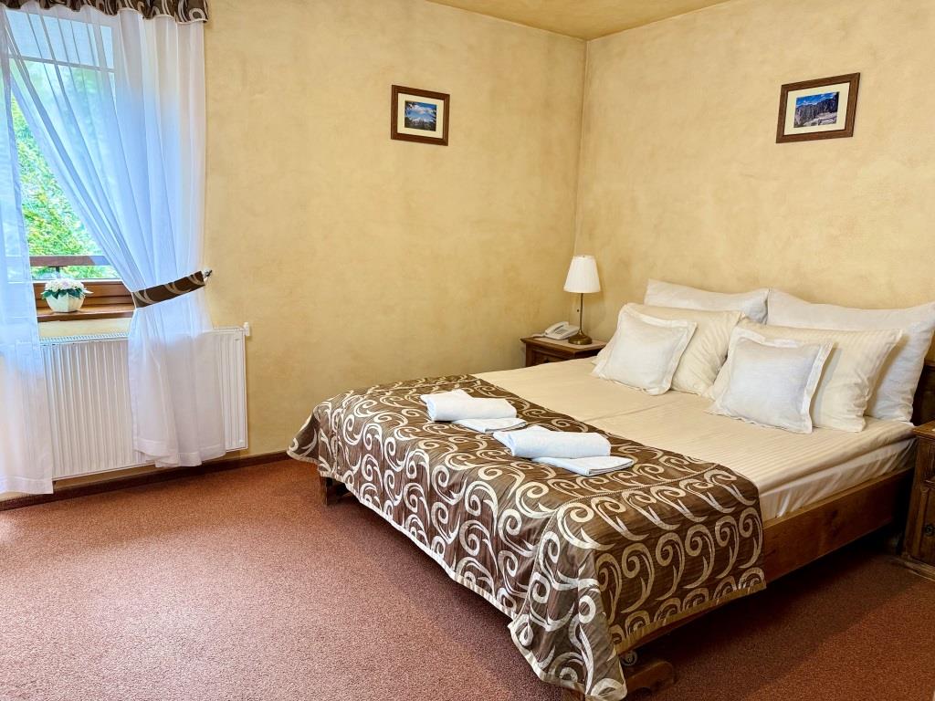 Jest to komfortowy, jasny pokój , urządzony w klimacie stylu zakopiańskiego. Pokój dwuosobowy z balkonem wyposażony jest w oryginalne meble z woskowanego litego drewna, wygodne łóżko małżeńskie oraz stół i krzesła. Posiadamy również pokoje dwuosobowe z łóżkami pojedynczymi. W pokoju znajduje się łazienka. Widok z balkonu przedstawia lasy Tatrzańskiego Parku Narodowego.